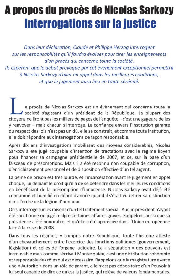 Dans leur déclaration, Claude et Philippe Herzog interrogent sur les responsabilités qu’il faudra évaluer pour tirer les enseignements d’un procès qui concerne toute la société.