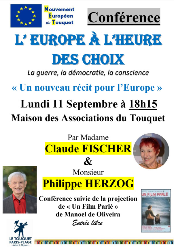 Rencontre/débat organisée par le Mouvement européen du Touquet avec Claude Fischer et Philippe Herzog, en partenariat avec Open World : « Un nouveau récit pour l’Europe » suivi du film de Manoel de Oliveira « Un film parlé ».